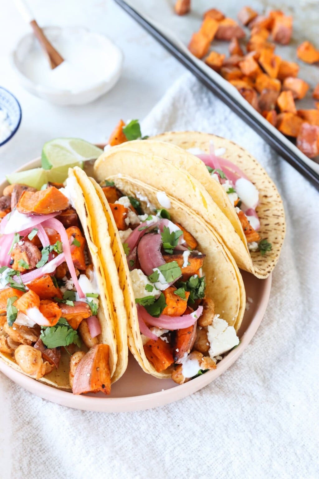 - Roasted White Bean and Sweet Potato Tacos with Lime Crema