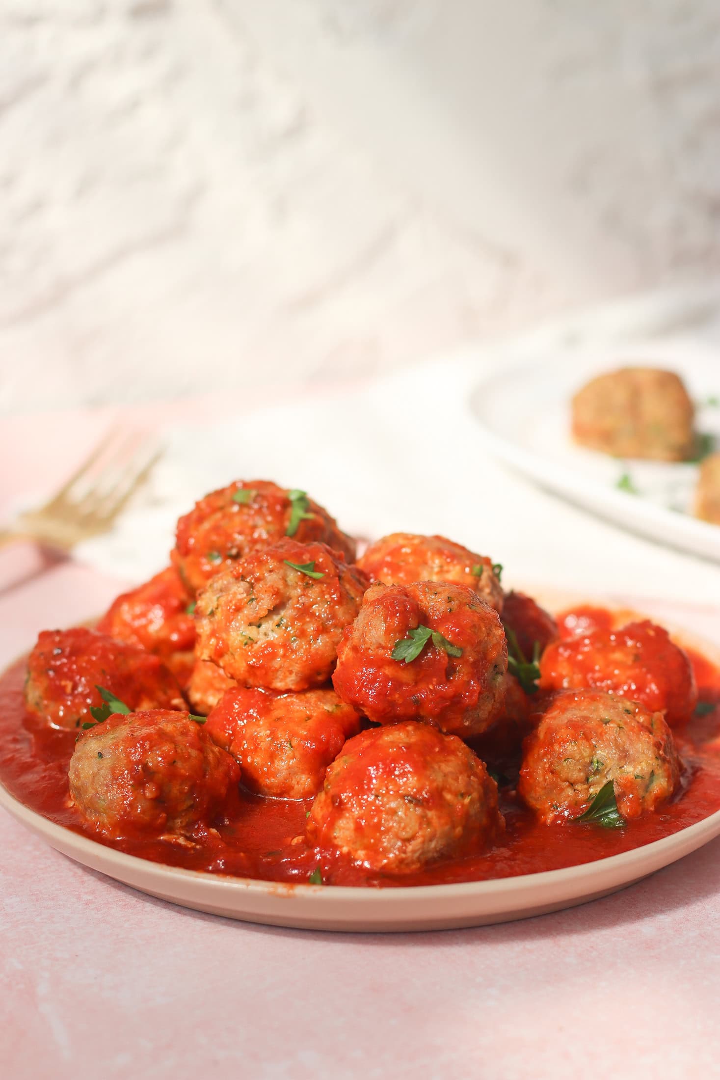 I’ve made a lot of turkey meatballs in my day, both as a busy mom and a dietitian who’s always looking for easy ways to pack in both flavor and nutrition— but these ones stand out from the pack. The combo of ground turkey and shredded zucchini makes for the juiciest meatballs. Cause we ain’t got time for dry turkey around here. If you love this style, my Greek Chicken Meatballs are another go-to—just as versatile, protein-packed, and kid-approved.